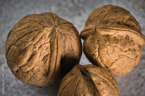 © Inna Vlasova, Obraz premium Walnut close up macro on black background.