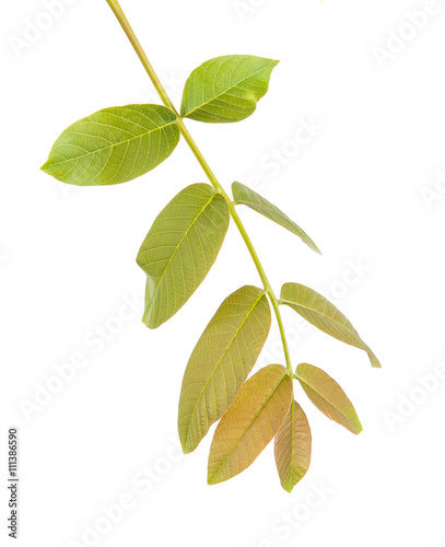 © toomler, Fototapeta premium walnut leaves on a branch. isolated on white background