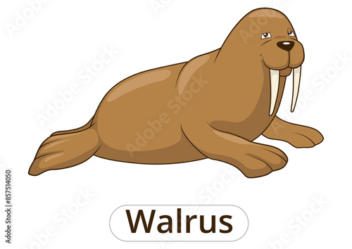 © Oleksandr Pokusai, Obraz premium Walrus cartoon colorful funny hand drawn PNG illustration