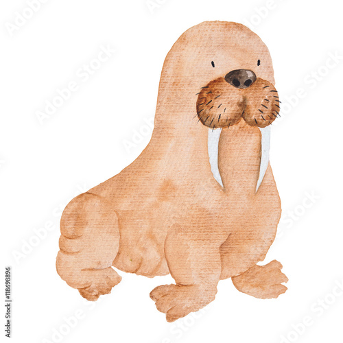 © Tanya Kart, Fototapeta premium Walrus Whale Watercolor hand-painted Illustration Sea animals Blue Whales Isolated Cute Kids