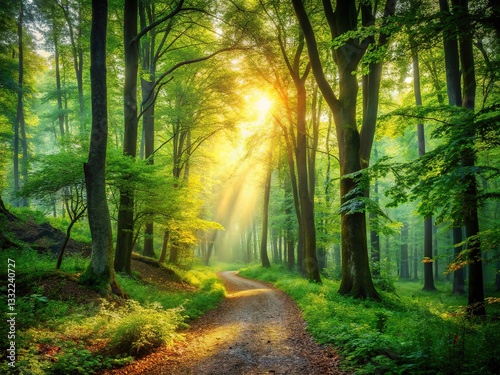 © Sandra, Obraz premium Wander nature's pathway through the captivating woods.
