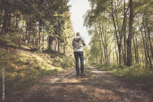 Obraz premium Wanderer auf einem einsamen Waldweg
