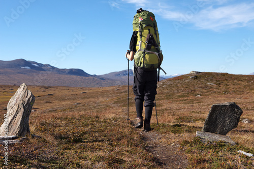 © Jens Ottoson, Naklejka premium Wanderin auf dem Padjelantaleden in Lappland