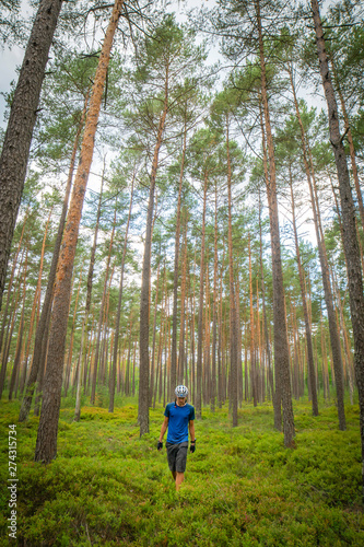 © Evaldas, Fototapeta premium wandering cyclist in nature without bicycle