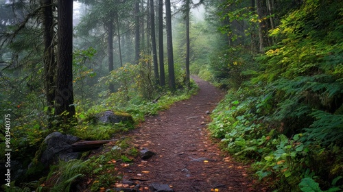 Obraz premium Wandering path amid the gloomy woodland.