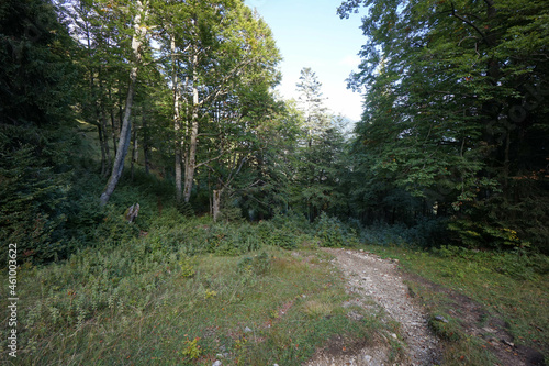 © Stephan, Fototapeta premium Wanderung auf den Schinder: Waldrand an der Trausnitzalm