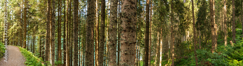 Fototapeta premium Wanderweg Fahrradweg durch den Wald Panorama