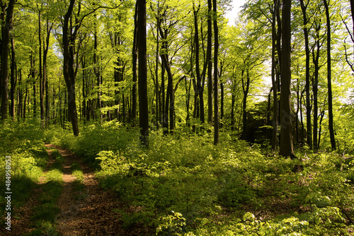 © Rouven, Fototapeta premium Wanderweg im sommerlichen Buchenwald in Niedersachsen