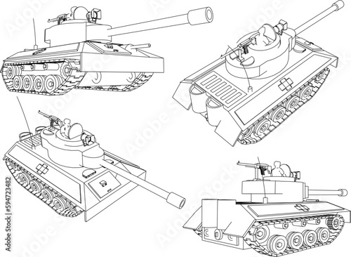 © nur, Obraz premium War battle tank illustration vector sketch