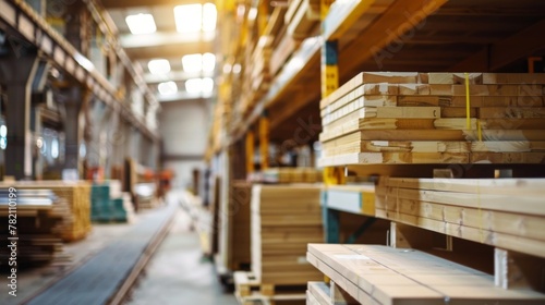 Fototapeta premium Warehouse Filled With Wooden Planks