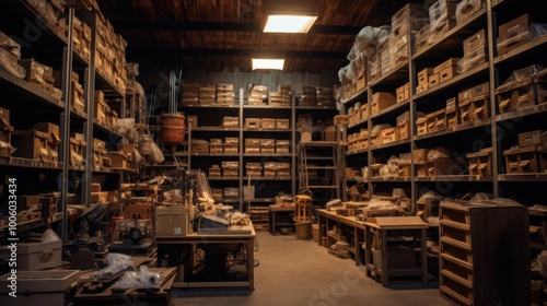 Obraz premium Warehouse Interior with Shelves Filled with Boxes