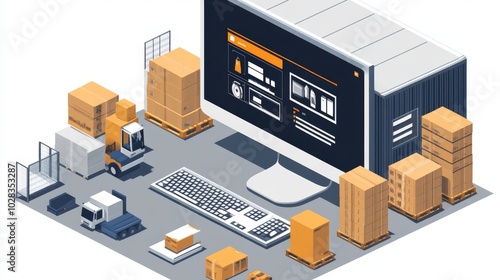 © Richa, Obraz premium Warehouse Inventory Management On Computer, Generative AI