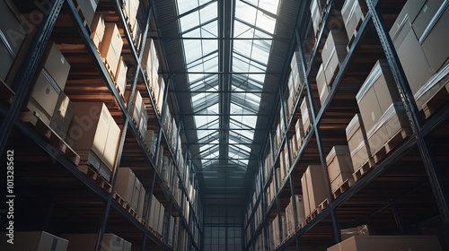 Obraz premium Warehouse storage interior with shelves and glass roof