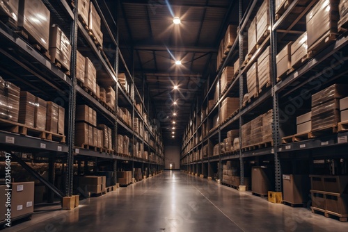 © Design_Poster, Fototapeta premium warehouse with forklift industrial, Warehouse climate controlled background