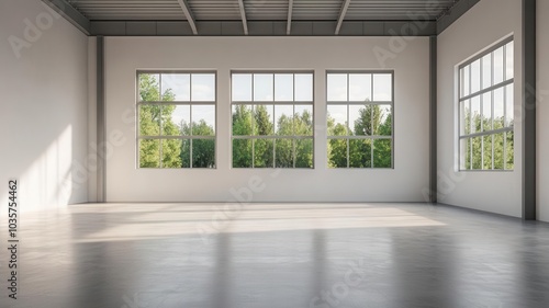Obraz premium Warehouse with large windows, natural light, modern and efficient interior