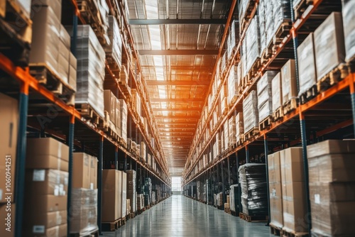 Fototapeta premium Warehouse with safety markings, clean layout, professional environment