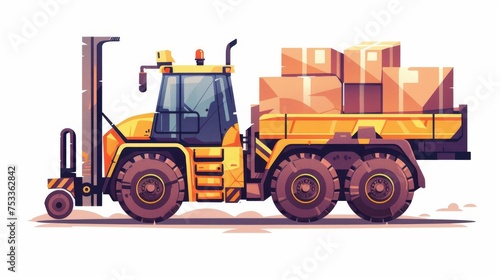 Fototapeta premium Warehouse workers and forklift drivers Forklift carrying pallets with goods in boxes, transportation, moving