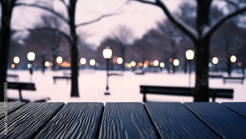 Obraz premium Warm and Festive Wooden Table with Holiday Background