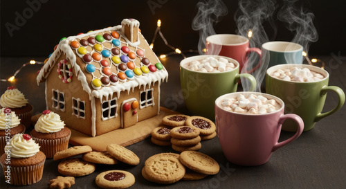 Naklejka premium Warm And Inviting Christmas Ambiance With Sweet Treats.