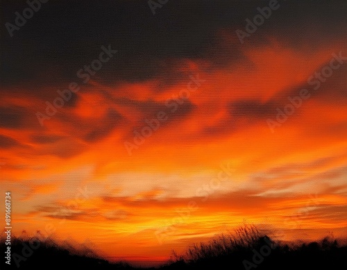 Fototapeta premium Warm autumn evening sky with orange and black gradient, perfect for Halloween-themed designs, sky, orange, watercolour, gradient