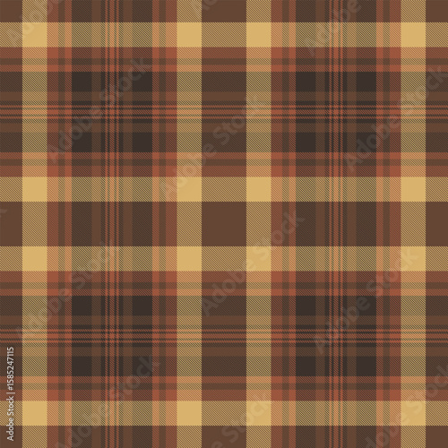 © Olena, Obraz premium Warm autumnal plaid pattern. Earthy tones of brown and beige create a rustic, cozy feel. Ideal for textile design, fallthemed projects, or creating a background with a vintage vibe.