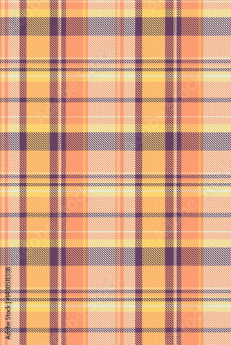 Obraz premium Warm autumnal plaid pattern in peach, yellow, and purple hues. Perfect for fall fashion, home decor, or textile design projects.