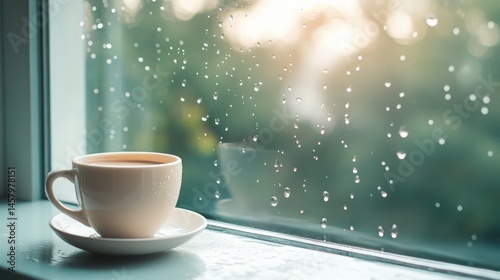 Obraz premium Warm Coffee by Rainy Window Cozy Atmosphere