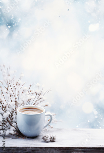 Fototapeta premium Warm drink on a cozy winter backdrop.