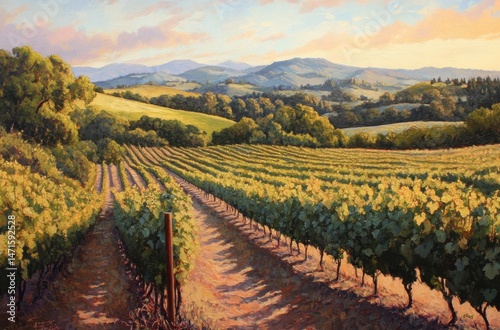 © Aranya, Fototapeta premium Warm evening light over a vineyard in late summer