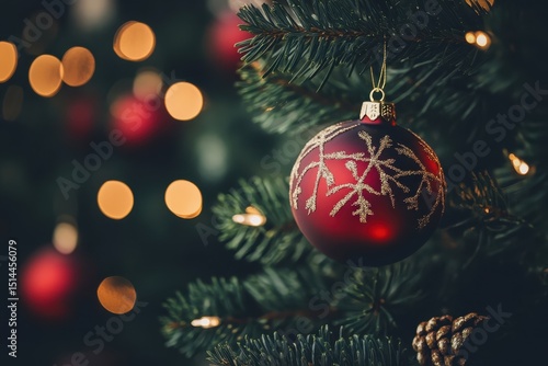 © Iftikhar alam, Naklejka premium Warm glow of Christmas ornaments on a festive tree filled with holiday cheer, Christmas decorations