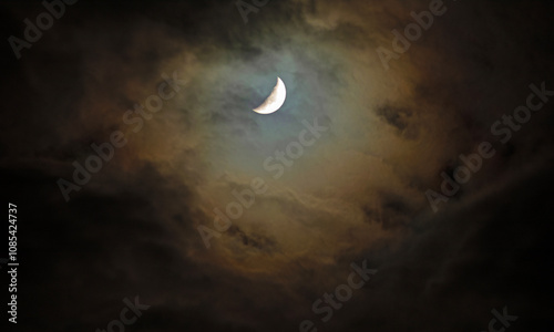 Fototapeta premium Warm glow of the moon through an opening in the clouds