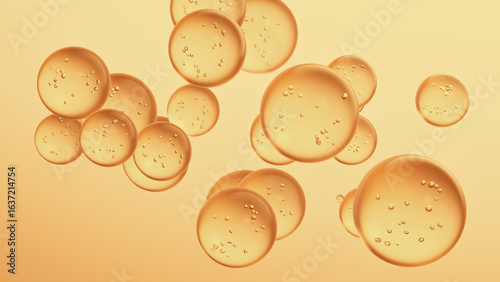 © eriksvoboda, Fototapeta premium Warm glowing bubbles on soft peach background. Science-inspired template