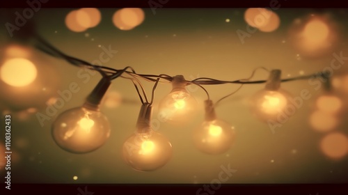 © Anugrah, Obraz premium Warm glowing string lights illuminate a dark background