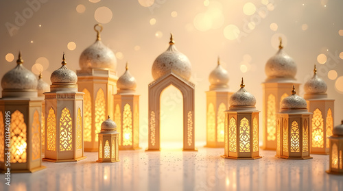 Fototapeta premium Warm Golden Islamic Lanterns Archway Ramadan Eid Festive Decorations
