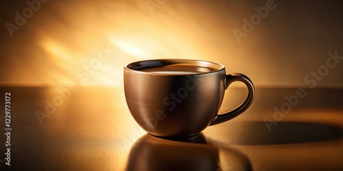 Obraz premium Warm golden light illuminates a dark bronze mug filled with a steaming...