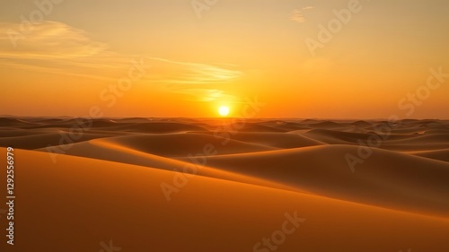 © BOXS, Obraz premium Warm Golden Sky Over Desert with Rising Sun and Expansive Sand Dunes