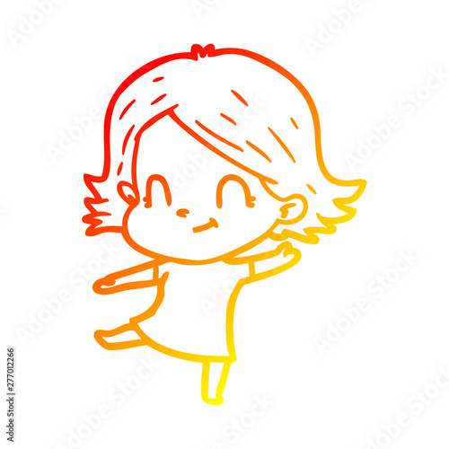© lineartestpilot, Fototapeta premium warm gradient line drawing cartoon friendly girl