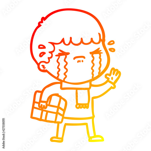 Obraz premium warm gradient line drawing cartoon man crying