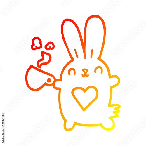 Obraz premium warm gradient line drawing cute cartoon rabbit with love heart and coffee cup