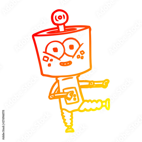 Fototapeta premium warm gradient line drawing happy cartoon robot dancing