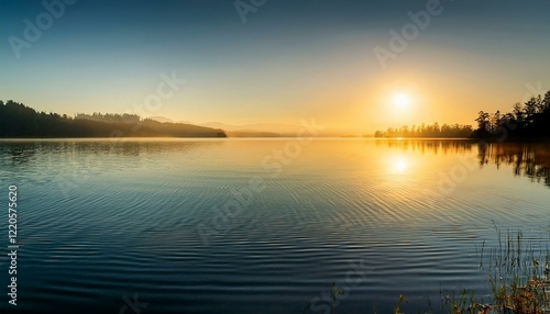 © hyoungjun, Naklejka premium Warm Lakeside Morning Background