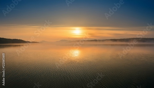 © hyoungjun, Naklejka premium Warm Lakeside Morning Background