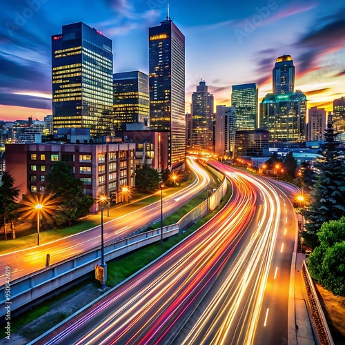 © App, Fototapeta premium Warm light trails on a cityscape night