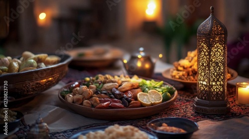 Fototapeta premium Warm Lit Festive Middle Eastern Dinner Table Setting
