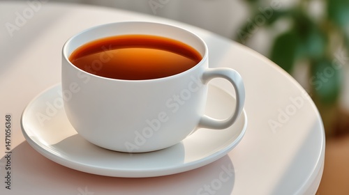 Fototapeta premium Warm Morning Tea Sunlit Cup on Table.