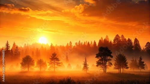 © chokdeelaw, Fototapeta premium Warm Orange Glow Over Trees, nature, landscape, nature