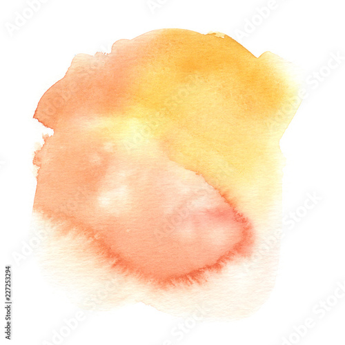 Fototapeta premium Warm peach orange and yellow stain painted in watercolor on clean white...