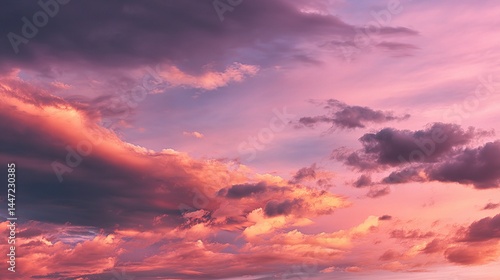 Obraz premium Warm Pink and Purple Sunset Sky with Orange Tones and Clouds