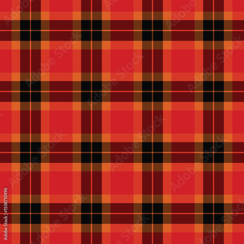 Obraz premium Warm plaid pattern in fiery reds and oranges, intersected by black lines. Evokes comfort, heritage, and autumn vibes. Ideal for backgrounds, textiles, and designs.