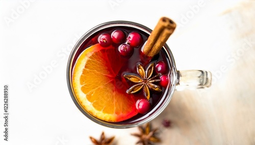© swan, Fototapeta premium Warm spiced wine with cranberries and orange. Festive winter drink.